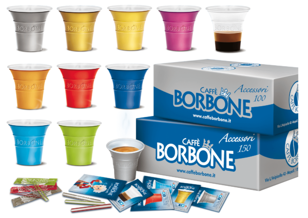 Caffè Borbone Servierset – 150 Espressobecher Zucker Rührstäbe – Accessori – KIT