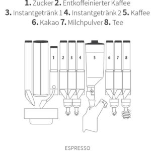 - 32? Touch Version ist mit einem Verteiler von Toppingprodukten wie Schokostreusel, Schockotropfen, Müsli usw., zum Dekor von leckeren Getränken wie im Koffee Shop